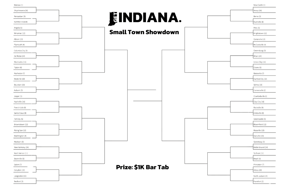 We’re in the middle of March which means bubbles have burst and madness on the hardwood is about to ensue. While you’re filling out your NCAA men’s and women’s basketball tournament brackets, we here at Get Indiana have put together a 64-town bracket broken into North, South, East and West regions. Each region has 16 towns seeded 1 through 16. We drew the line for small towns at roughly 18,000 for population, so sorry in advance if your town didn’t make the cut. The fun part? Your votes will determine the winners and how the bracket ultimately plays out. Which Indiana small town will become a Cinderella story and run deep into the bracket, and which one will cut down the nets and receive a $1,000 bar tab at its local dive bar with yours truly?