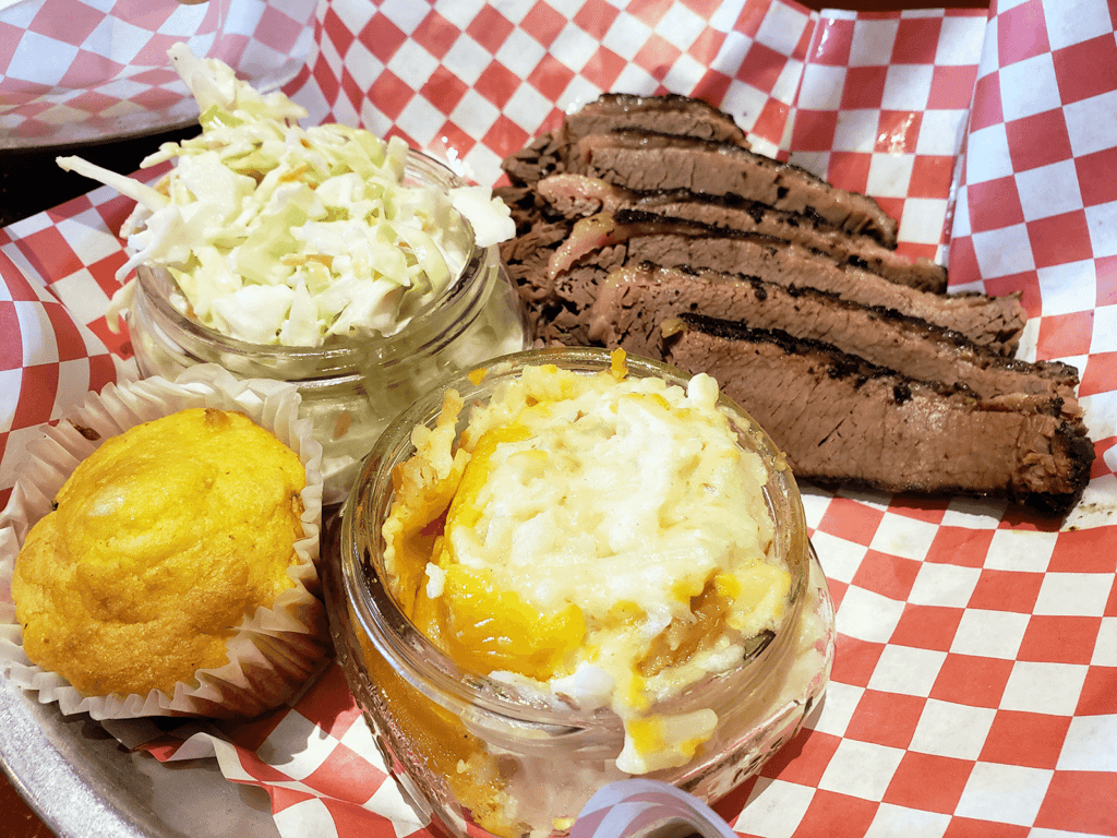 Sides aren’t just an afterthought here, they’re part of the main event. The cheesy potatoes are a fan favorite, and the Brunswick stew adds a smoky, hearty kick that pairs perfectly with any of its meat options. And yes, save room for dessert, because the banana pudding is everything you hope it will be.