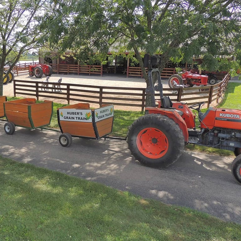 Huber’s apple orchards cover acres of structured rows, with tractor-pulled wagon rides taking you out to the fields. Apple season typically runs from late August through October, depending on the weather and crop.