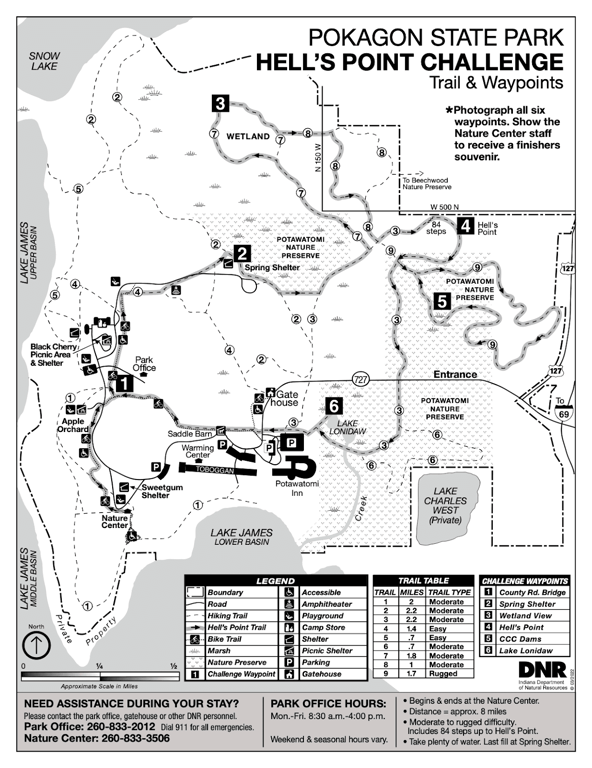Come along with me to Pokagon State Park and let's tackle the 8-mile-long Hell's Point Challenge together! We'll learn all about the park including the Pokagon band of the Potawatomi, the CCC young men, the wide variety of park habitats, the Potawatomi Inn, stable barn, toboggan run, and more.