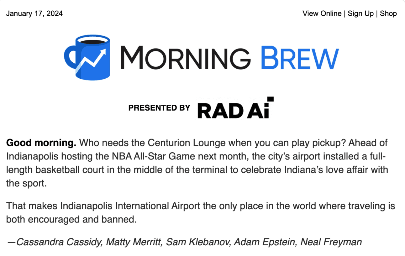 On Wednesday, 4 million people were sent an email that celebrated Indianapolis. Their quote “Indianapolis Airport is the only place in the world where traveling is both encouraged and banned” is gold 🥇 Central Indiana is the place to be! (image below)