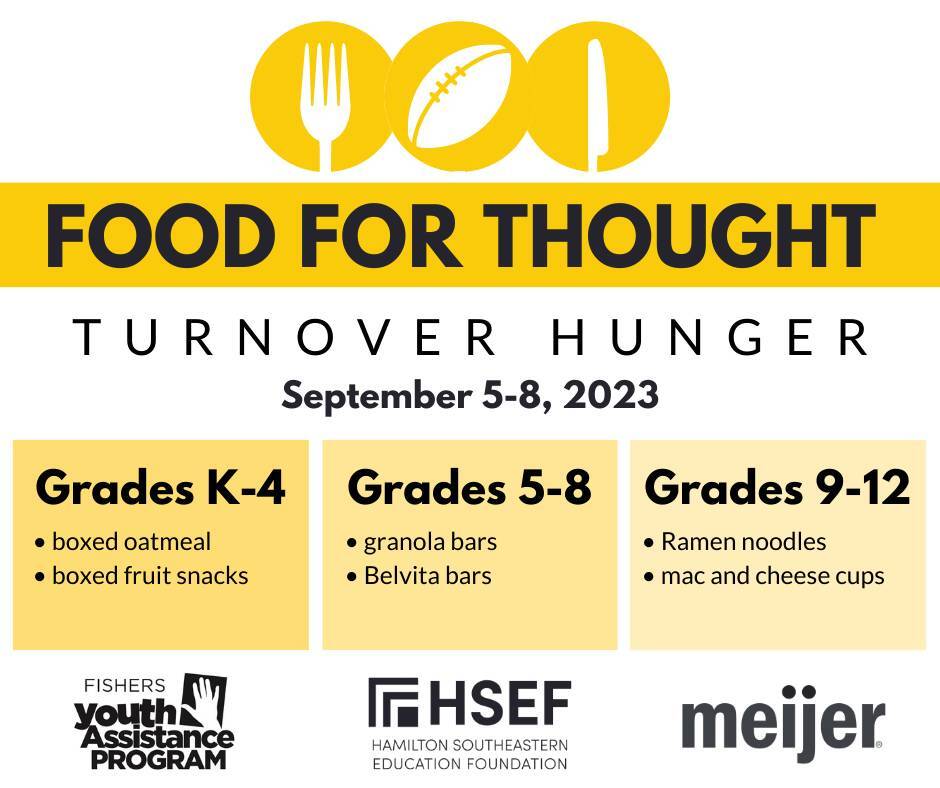 The Food for Thought food drive asks for donations for the next few days. Donations will help stock local pantries. Their goal is to support students and families within HSE Schools. If you have a student you can send them to school to donate with the following: