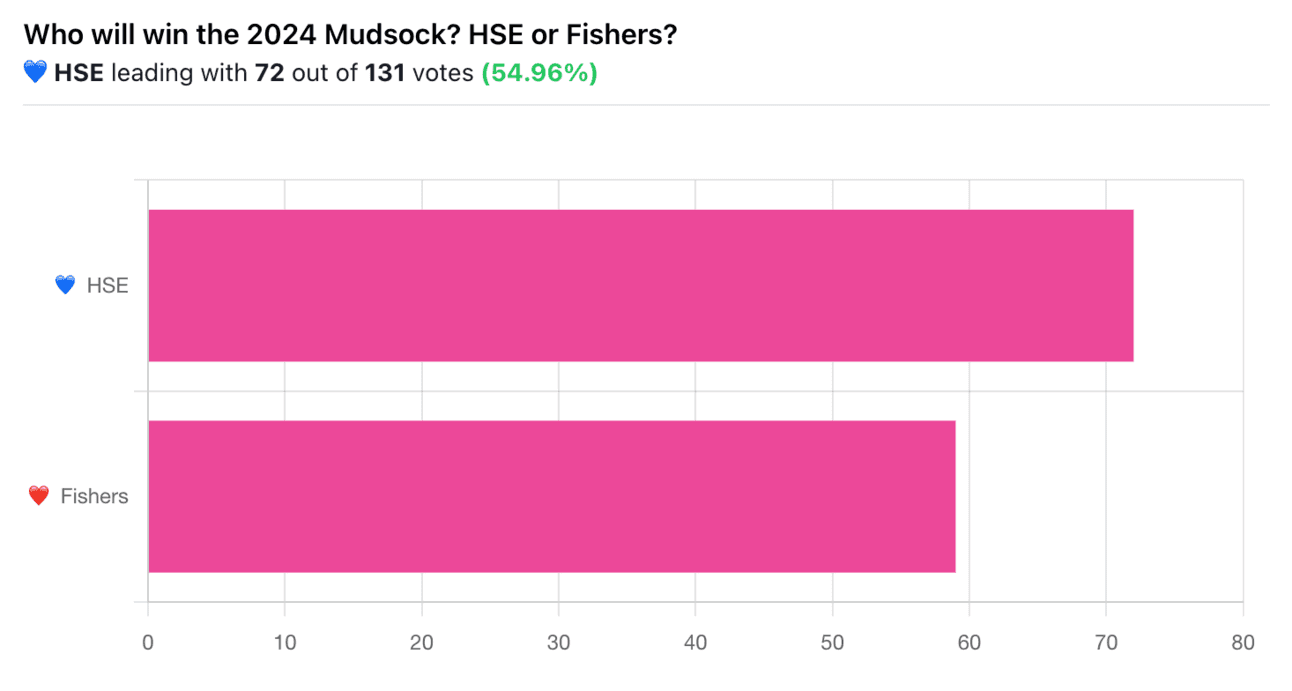 This week’s poll was REALLY close, but readers think HSE has a 5% edge of Fishers tonight. Have fun if you’re going tonight!