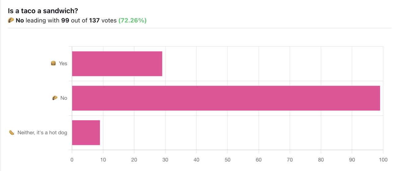 It would seem that 72% of you don’t agree with the judge in Fort Wayne ruling a taco a sandwich 🤣