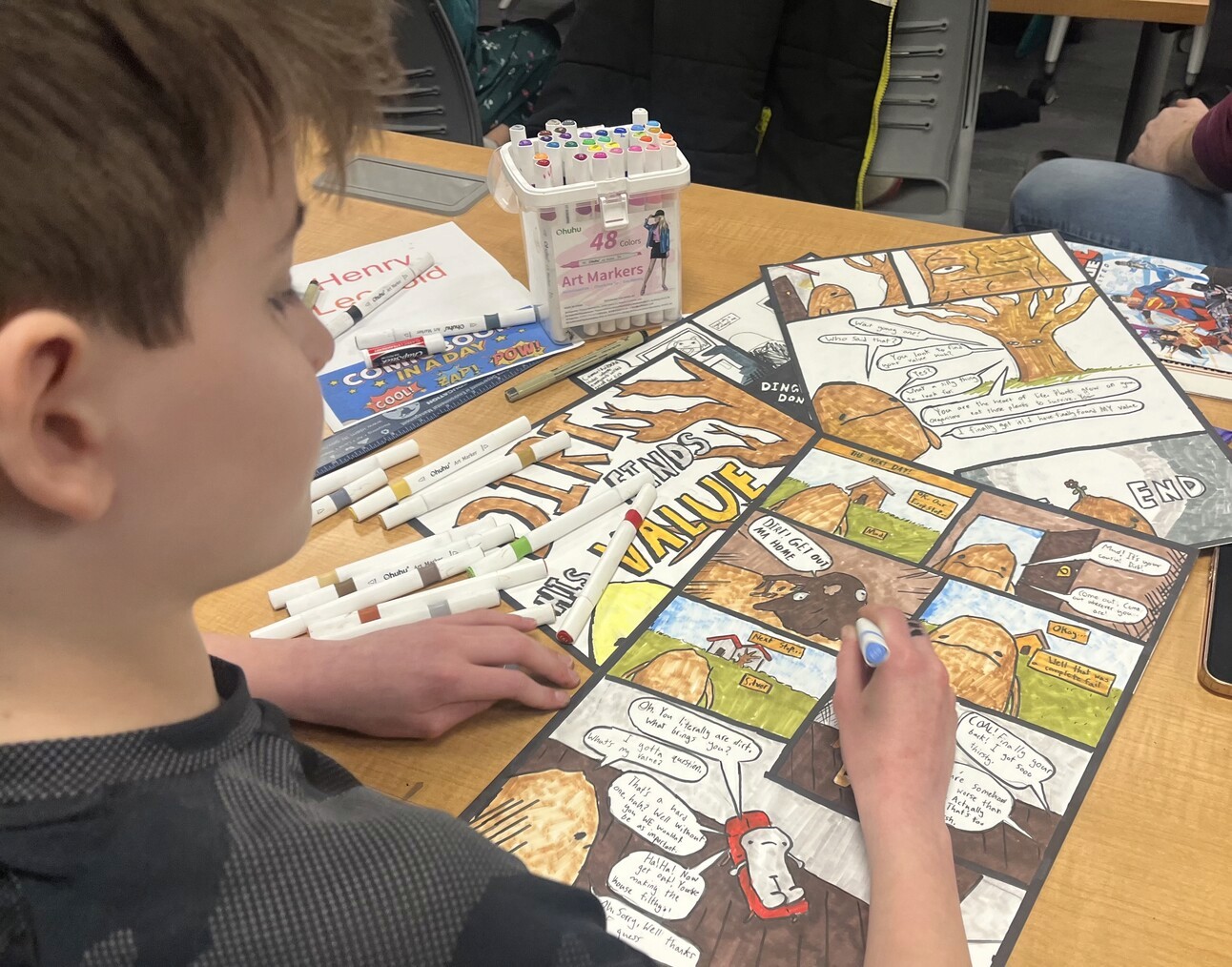 Henry hard at work on his comic