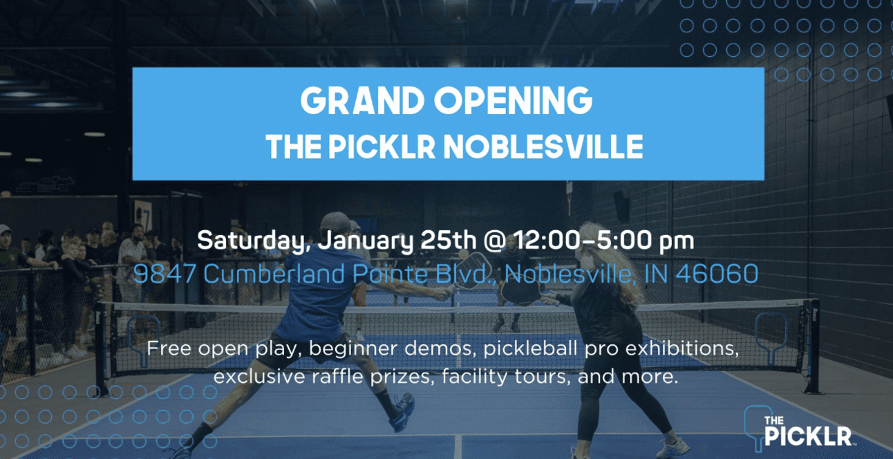 The wait is over for Pickleball fans. It's finally time—Saturday, 1/25, from 12–5 pm is the Grand Opening of The Picklr Noblesville.