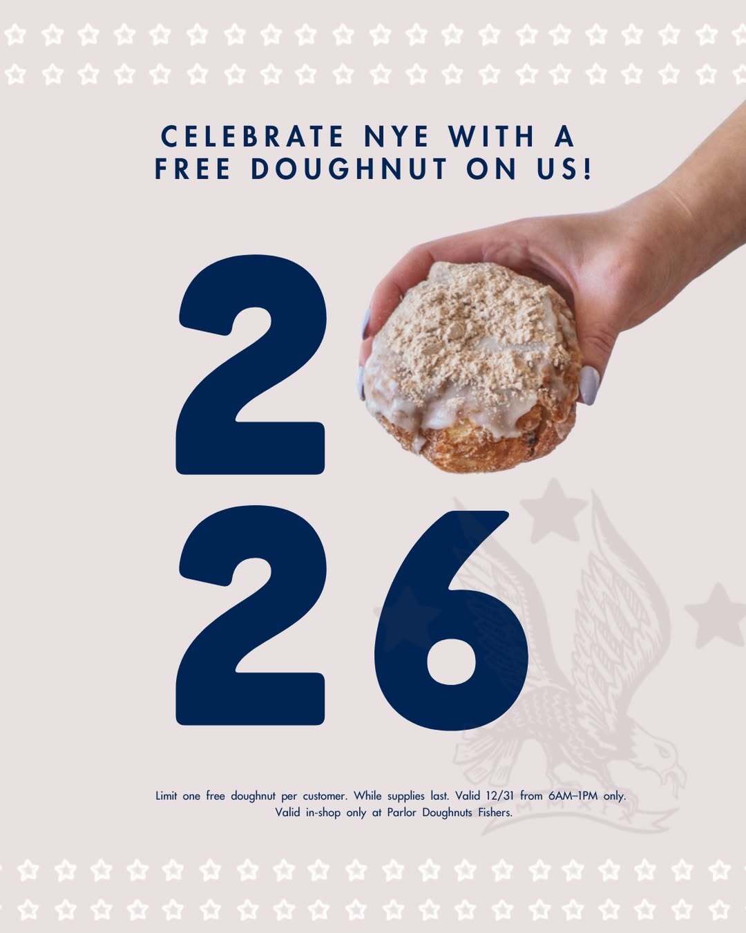 Kick off New Year’s Eve with a sweet treat! Parlor Donuts Fishers is giving every customer a FREE donut while supplies last.