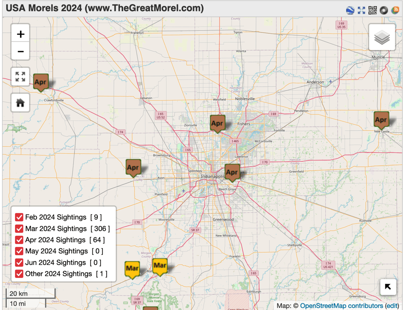 Start by looking around dead elm trees. South-facing hills and areas where water could stand for at least a day are also good. Fort Ben, Brown County, and Morgan-Monroe State Park are your best bets. Just make sure you respect any signage of preserved land or private property.
