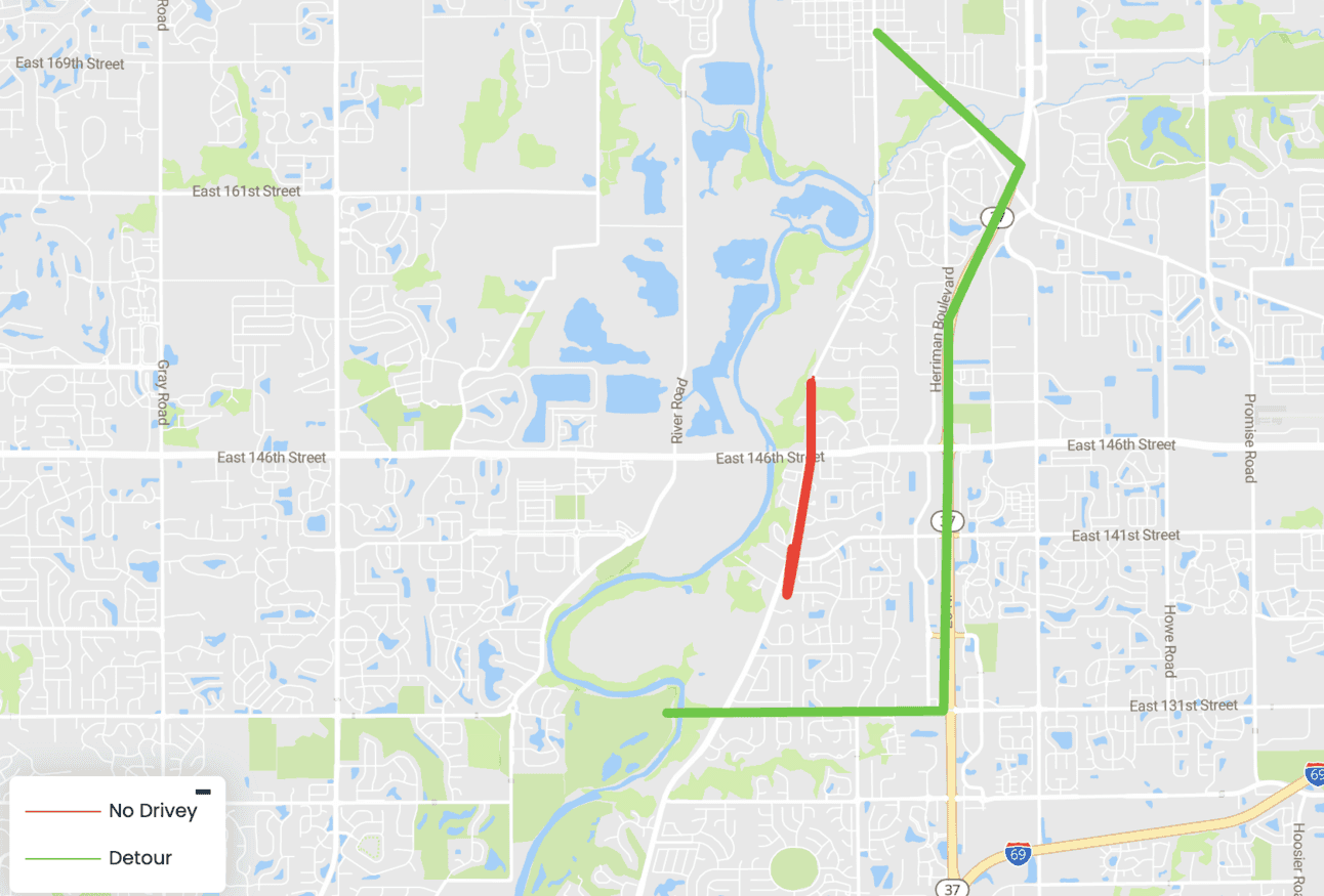 Allisonville Road and 146th Street Detour Map